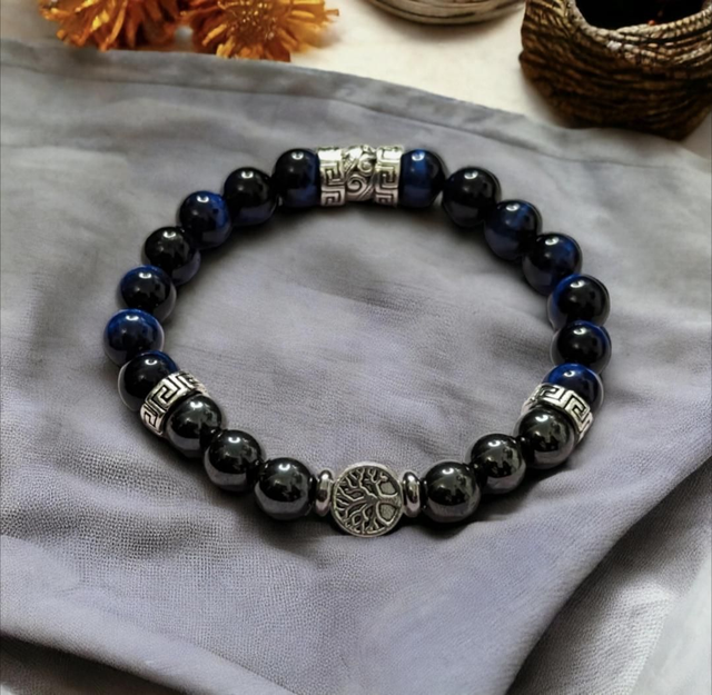 Cicatrisation/douleurs/Bracelet en Oeil de tigre bleu et Hématite